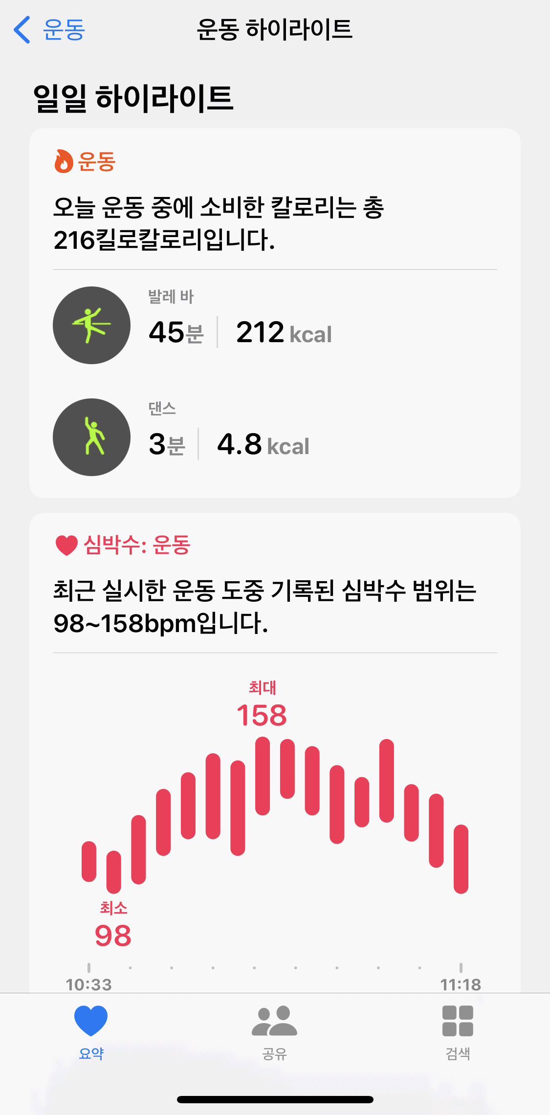제가 실제로 발레 수업을 들으며 심박수를 측정한 것입니다.